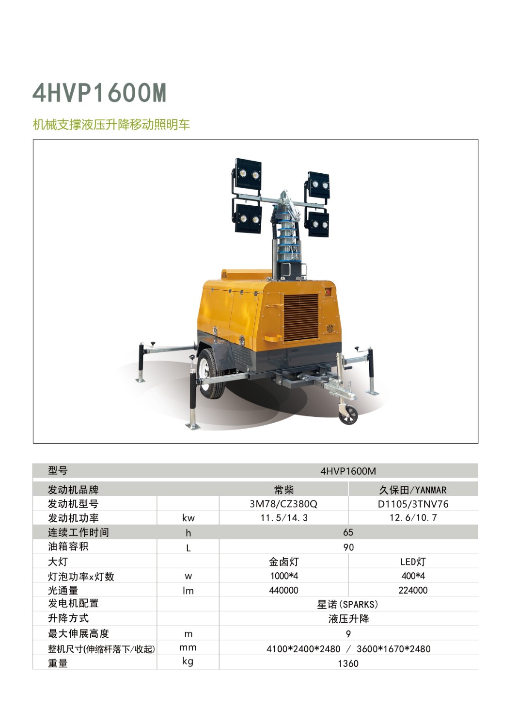 山東思拓瑞克工程機(jī)械有限公司-移動照明車-機(jī)械支撐液壓升降照明車4HVP1600M